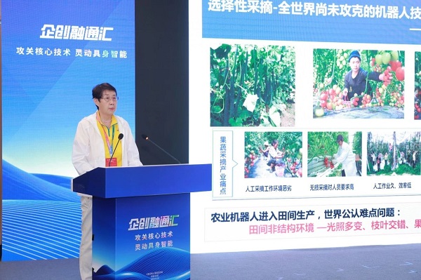 中国农业大学教授李伟作题为《农业机器人具身智能关键技术与核心部件》的报告。李教授认为,农业机器人(尤其是采摘机器人)的核心挑战在于非结构化环境的感知与决策,具身智能需通过真实场景训练、多模态感知融合及本体结构优化,突破技术瓶颈,满足市场刚需,拥抱亿级市场规模。