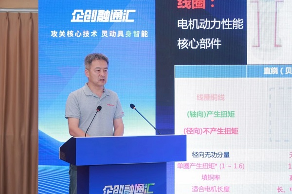 杭州贝丰科技股份有限公司首席产品官魏希盟作题为《寸劲终可得:高功率密度电机实现灵巧手握力跃升》的报告。魏总认为,机器人行业的突破方向在于通过关节电机等核心技术革新,让机械系统逼近甚至超越生物能效,最终实现"用一度电干十度电的活"的产业竞争力。